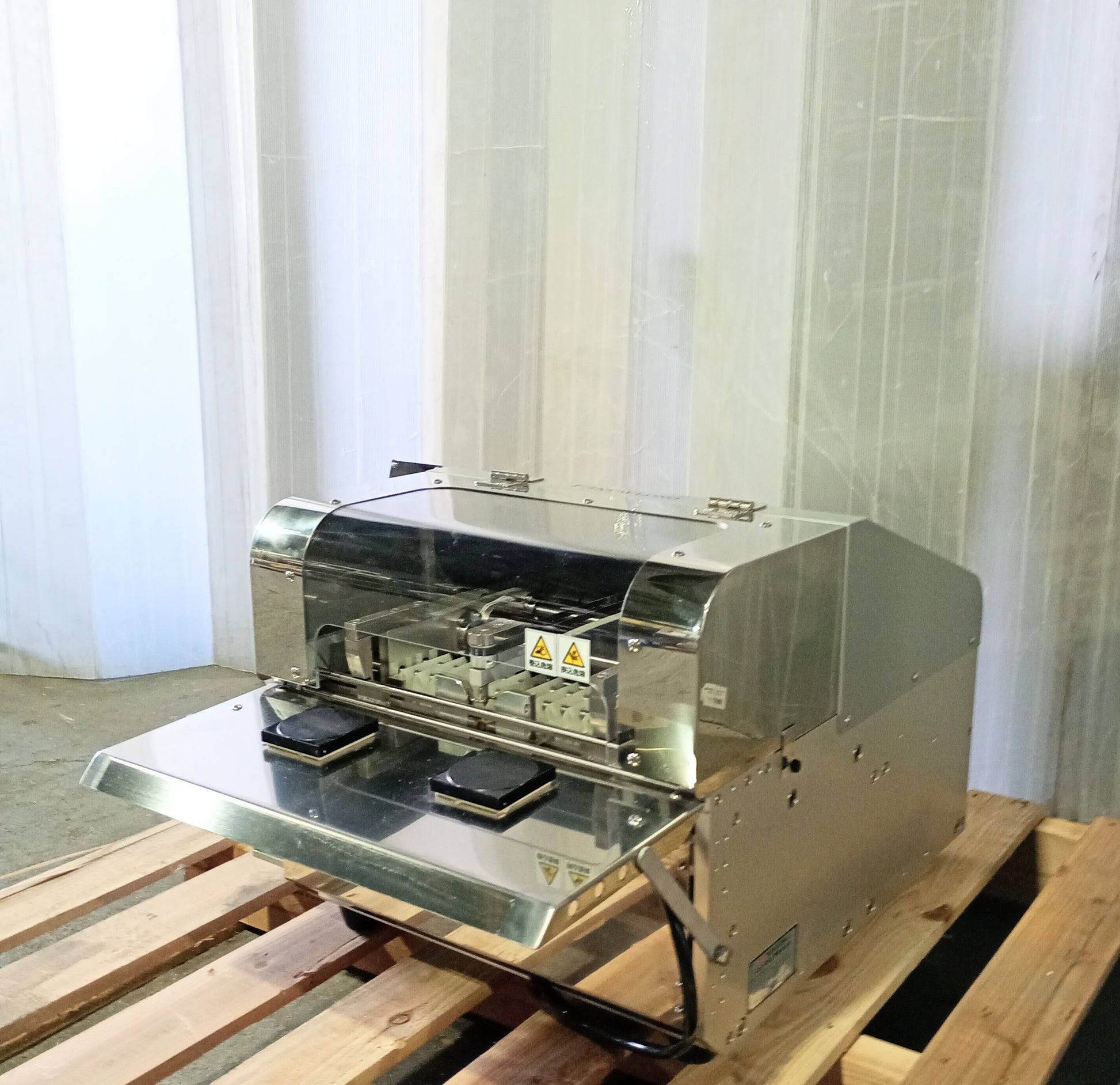 なお、消耗部品の劣化や充填材料切れなどによる動作不良や故障などは新品中古を問わずいつかは起こりうるものであり、中古ゆえの現象ではございません。必要な消耗部品や材料のご購入、部品交換やメンテナンス費用はお客様のご負担となります。そのほか、機械の管理やメンテナンス状況、清掃状況、使用する素材などの影響で故障につながることもございます。お客様の機械の使用方法に問題がございました場合の修理費用はお客様のご負担となります。