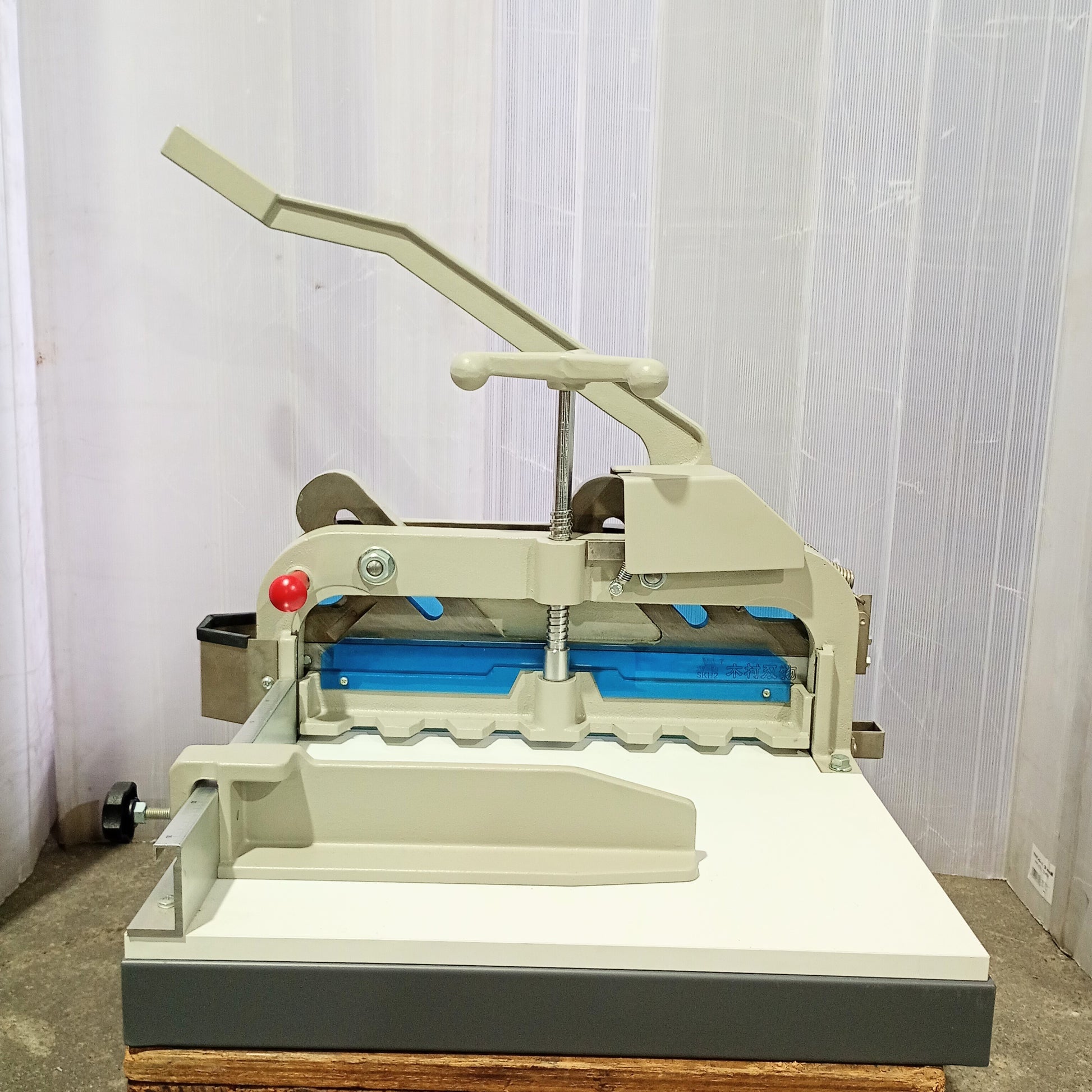 安全装置:ストップボタン、刃物降下防止バネ、プレスプレートロック装置